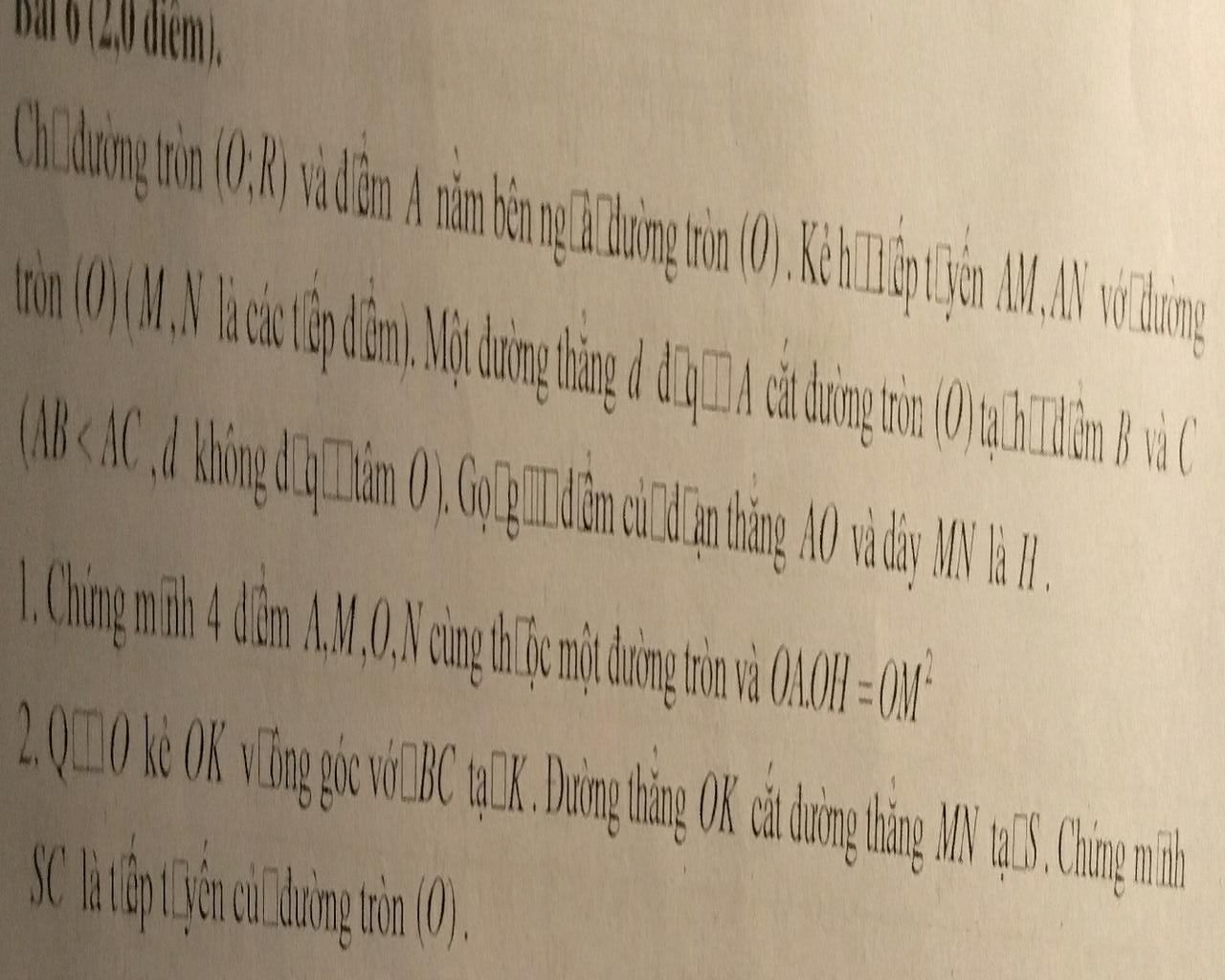 1. Chứng minh 4 dâm 1.M.0,N cùng thuộc một ...