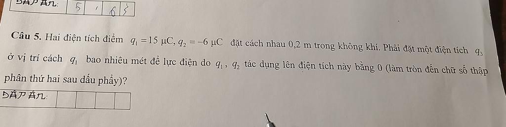 Do \({q_1},{q_2}\) trái dấu nên để \({q_3}\) cân bằng, nó phải nằm trên đường thẳng AB, ngoài đoạn AB.