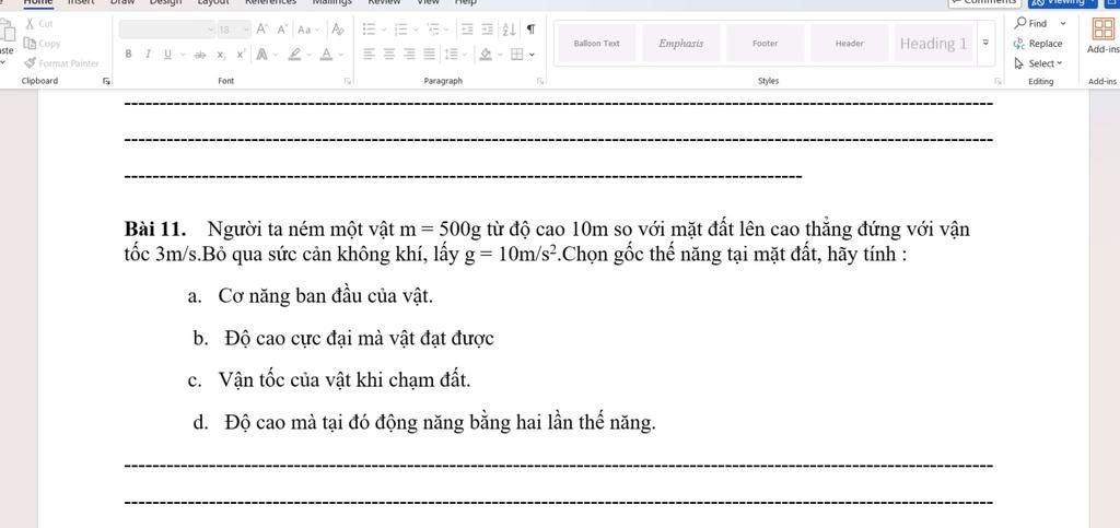 $\Leftrightarrow mgh' = 0,5 \cdot 10 \cdot h' = 5h' = \dfrac{209}{12}(\text{J})$