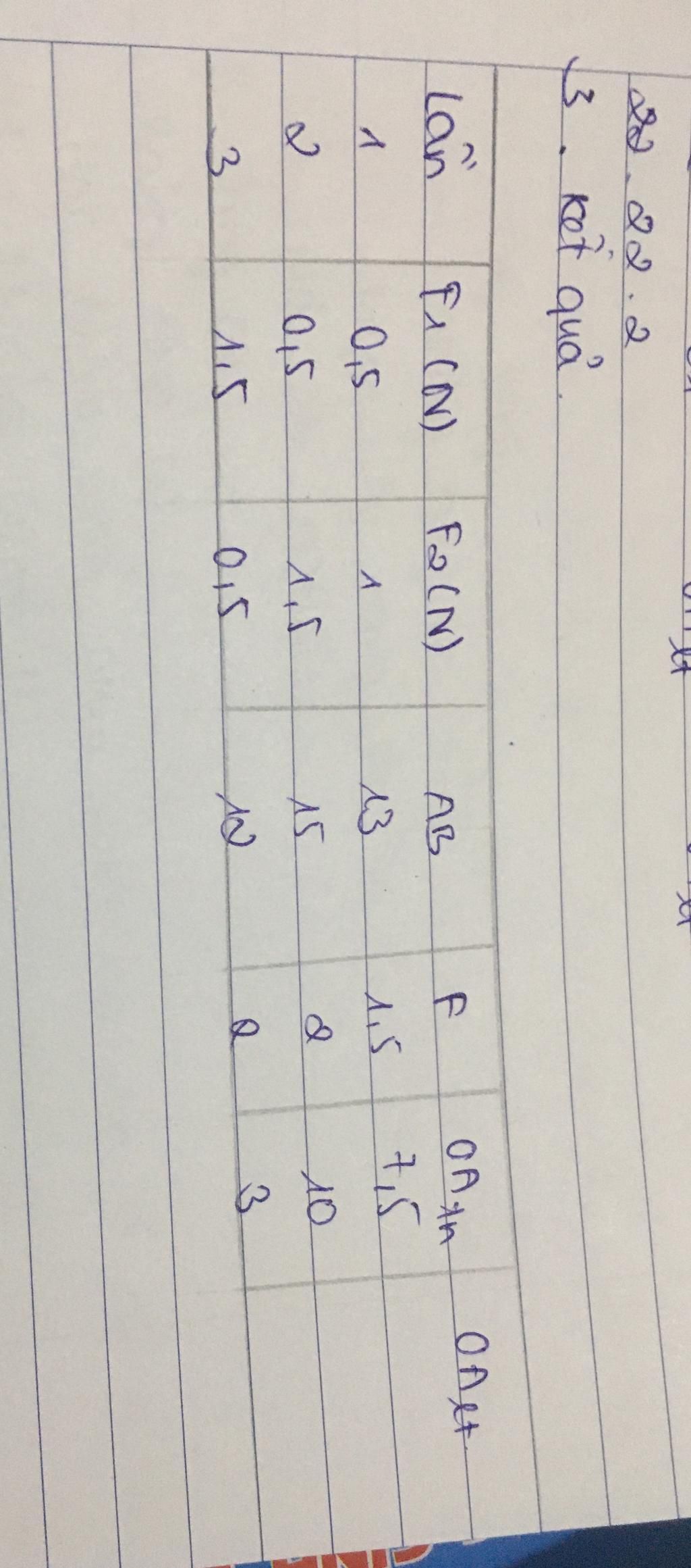 Hoàn thành bảng số liệu, làm sai số , nguyên nhân sai số , cách khắc phục . Giúp mình với ạ