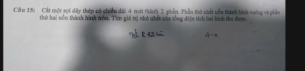 Gọi độ dài đoạn uốn hình vuông là $x$ (m, $0 < x < 4$).