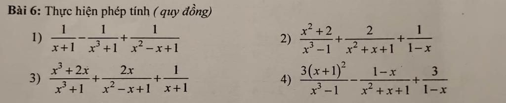 `2, (x^2 + 2)/(x^3 - 1) + 2/(x^2 + x + 1) + 1/(1-x) (ĐK : x \ne 1)`