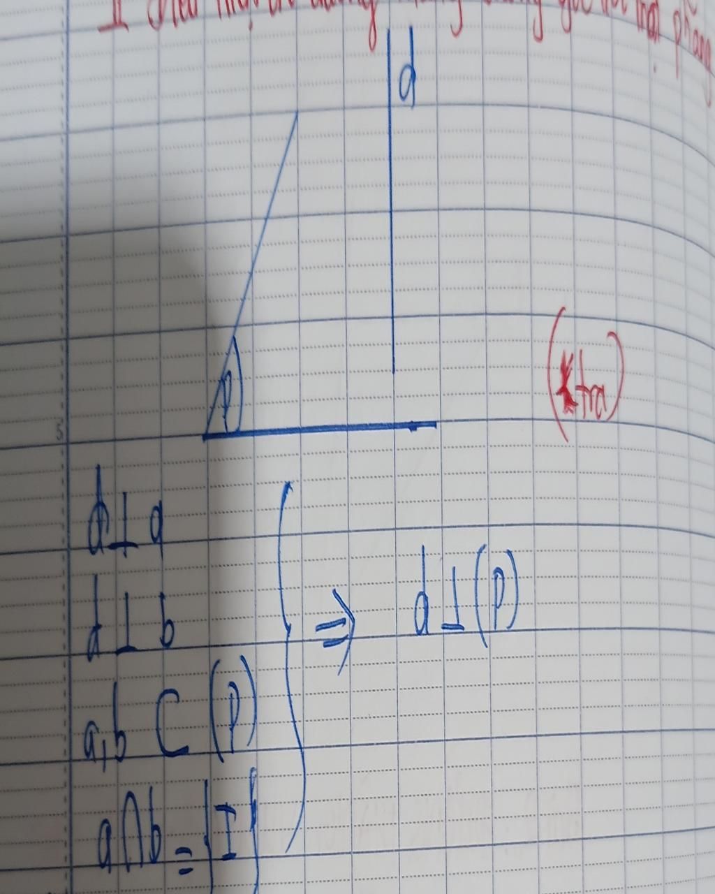 Mà `a,b` cắt nhau tại `I` nên mặt phẳng `(P)` được xác định bởi `2` đg thẳng `a` và `b`