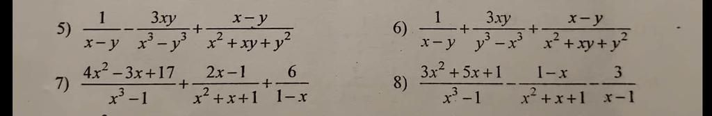 `1/(x - y) + (3xy)/(y^3 - x^3) + (x - y)/(x^2 + xy + y^2)`