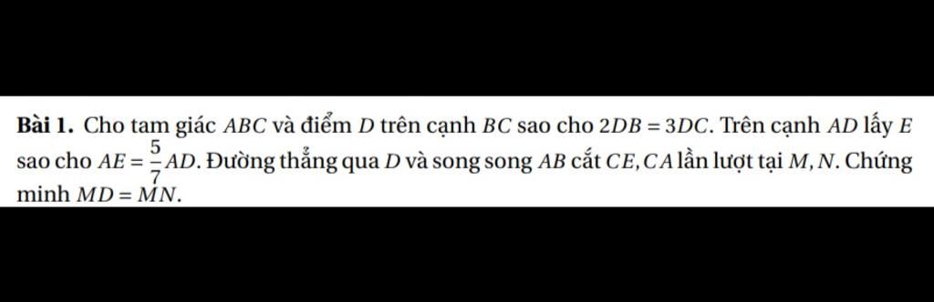Bài 1. Cho tam giác ABC và điểm D trên cạnh BC sao cho 2DB = 3DC. Trên cạnh AD lấy E