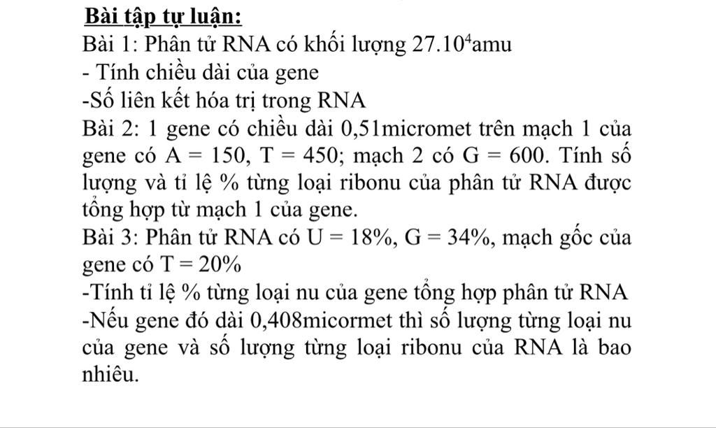 Bài 1: Phân tử RNA có khối lượng 27.10amu