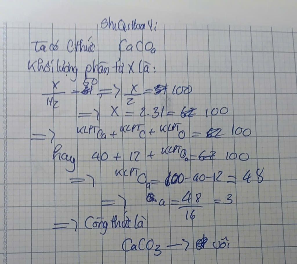 một hợp chất X có phân tử gần 1 nguyên tử calcium, 1 nguyên tử carbon và a nguyên tử oxygen. Khối lượng phân tử của X gấp 50 lần khối lượng phân tử hydrogen. Xác định nguyên tố X