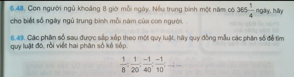 `6.49.` Mẫu chung là $40$. Ta có dãy số: $\frac{5}{40}; \frac{2}{40}; \frac{-1}{40}; \frac{-4}{40}; \dots$