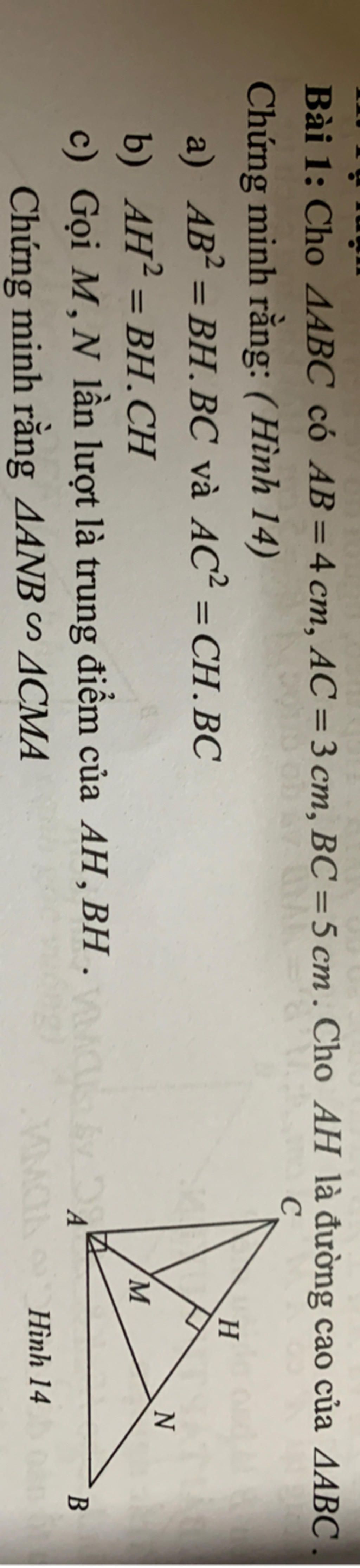 `=> (AM)/(CA) = (BN)/(AB)` (`M,N` lần lượt là trung điểm của `AH,BH`