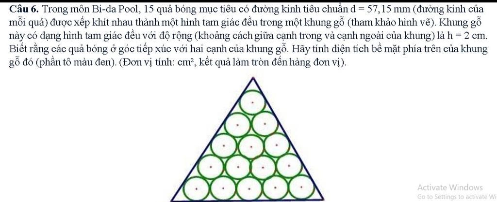Câu 6. Trong môn Bi-da Pool, 15 quả bóng mục tiêu có đường kính tiêu chuẩn d = 57,15 mm (đường kính của