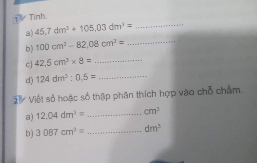 `d) 124dm^3 : 5= (124:5)dm^3= 62dm^3`