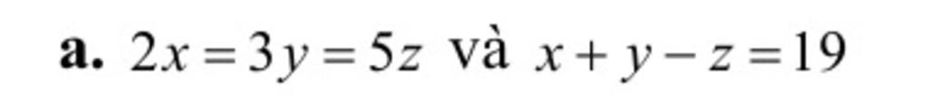 mà $\frac{y}{5}$ `=` $\frac{z}{3}$ ⇒ $\frac{x}{15}$ `=` $\frac{y}{10 }$