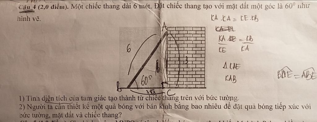& \text{Quả bóng tiếp xúc với bức tường, mặt đất và chiếc thang} \\