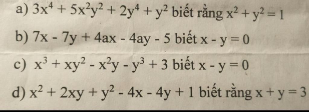 `a)` `3x^4 + 5x^2y^2 + 2y^4 + y^2`