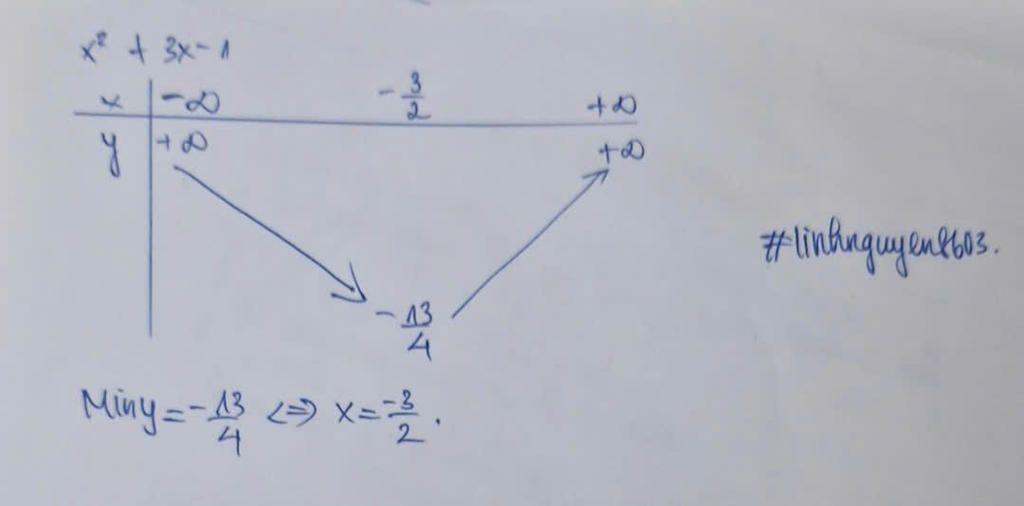 Vậy hàm số đạt GTNN tại `y=-``(13)/4` khi `x=-``3/2`
