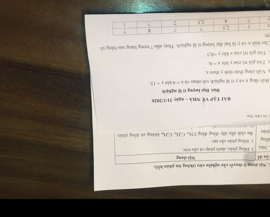 BÀI TẬP VỀ NHÀ – ngày 31/1/2026