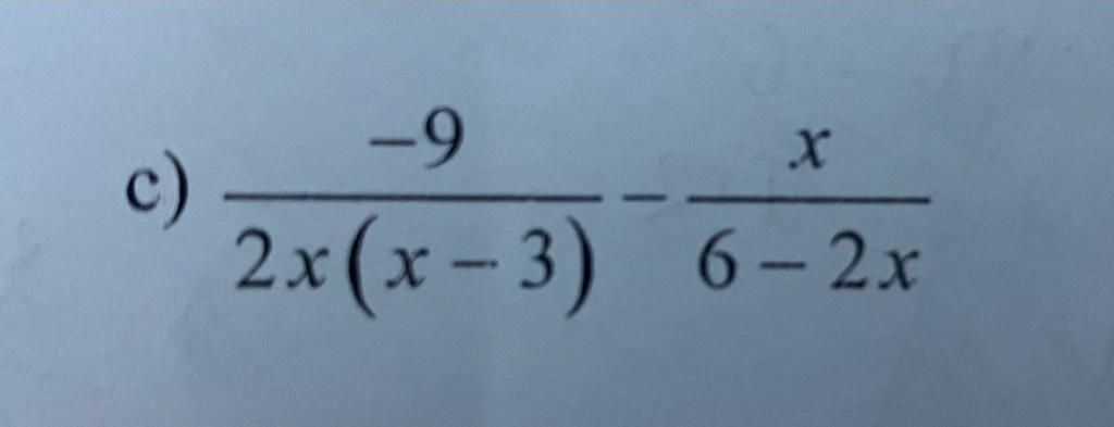 `c) (-9)/[2x(x-3)] - (x)/(6-2x)` ( ĐKXĐ : `x` $\neq$ `3` ; `x` $\neq$ `0` )