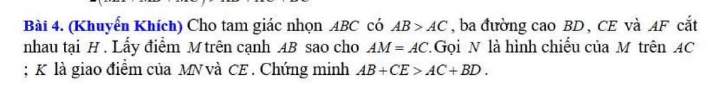 Bài 4. (Khuyến Khích) Cho tam giác nhọn ABC có AB > AC, ba đường cao BD, CE và AF cắt