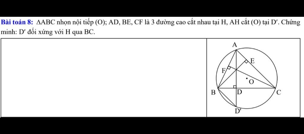 `=>` `D'` đối xứng với `H` qua `BC`