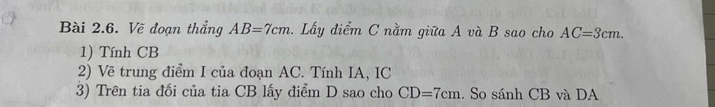 `=> CB = AB - AC = 7 - 3 = 4 (cm)`