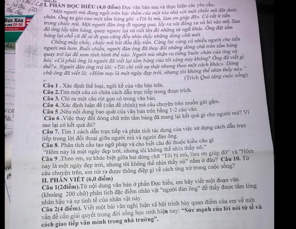 IM, CÁI PHẦN ĐỌC HIỂU (4,0 điểm) Đọc văn bản sau và thực hiện các yêu cầu;