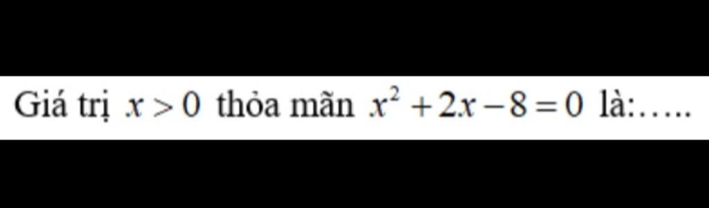 Vậy Giá trị `x >0` thỏa mãn `x^2 +2x -8 =0` là `: 2`