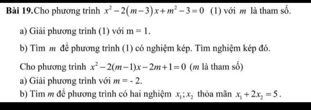 Theo Viète: `{(x_1 + x_2 = 2m - 2(1)),(x_1x_2 = -2m + 1(2)):}`