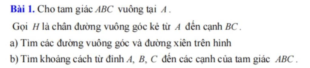 a) Tìm các đường vuông góc và đường xiên trên hình