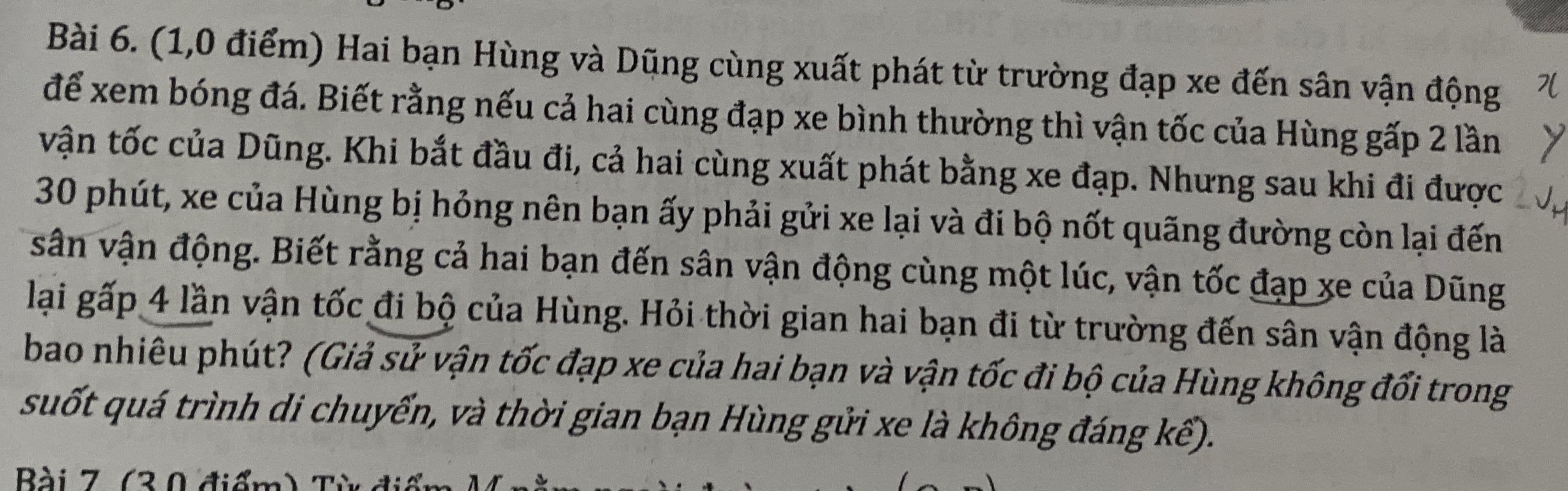& \text{Gọi } t \text{ (phút) là thời gian hai bạn đi từ trường đến sân vận động } (t > 30). \\