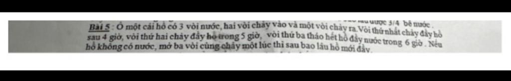 Trong một giờ, vòi thứ hai chảy được: `1 : 5 = 1/5` (hồ)
