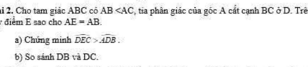 Xét `Delta ADE` có `hat (DEC)` là góc ngoài của tam giác tại đỉnh `E`