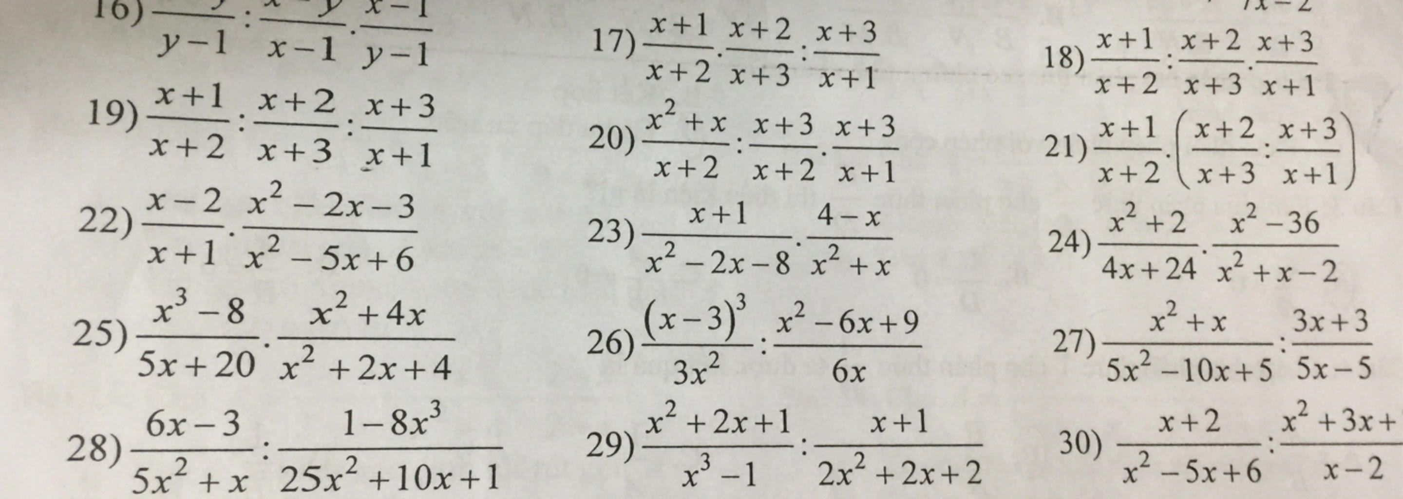 & \quad \dfrac{x+1}{x+2} : \dfrac{x+2}{x+3} \cdot \dfrac{x+3}{x+1} \\