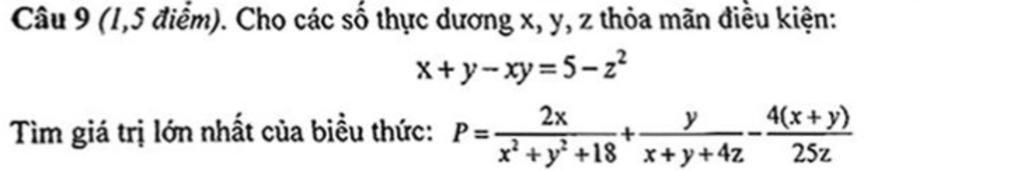 suy ra: `text{Max}_\text{P}=1/25` khi `x=y=1,z=2.`