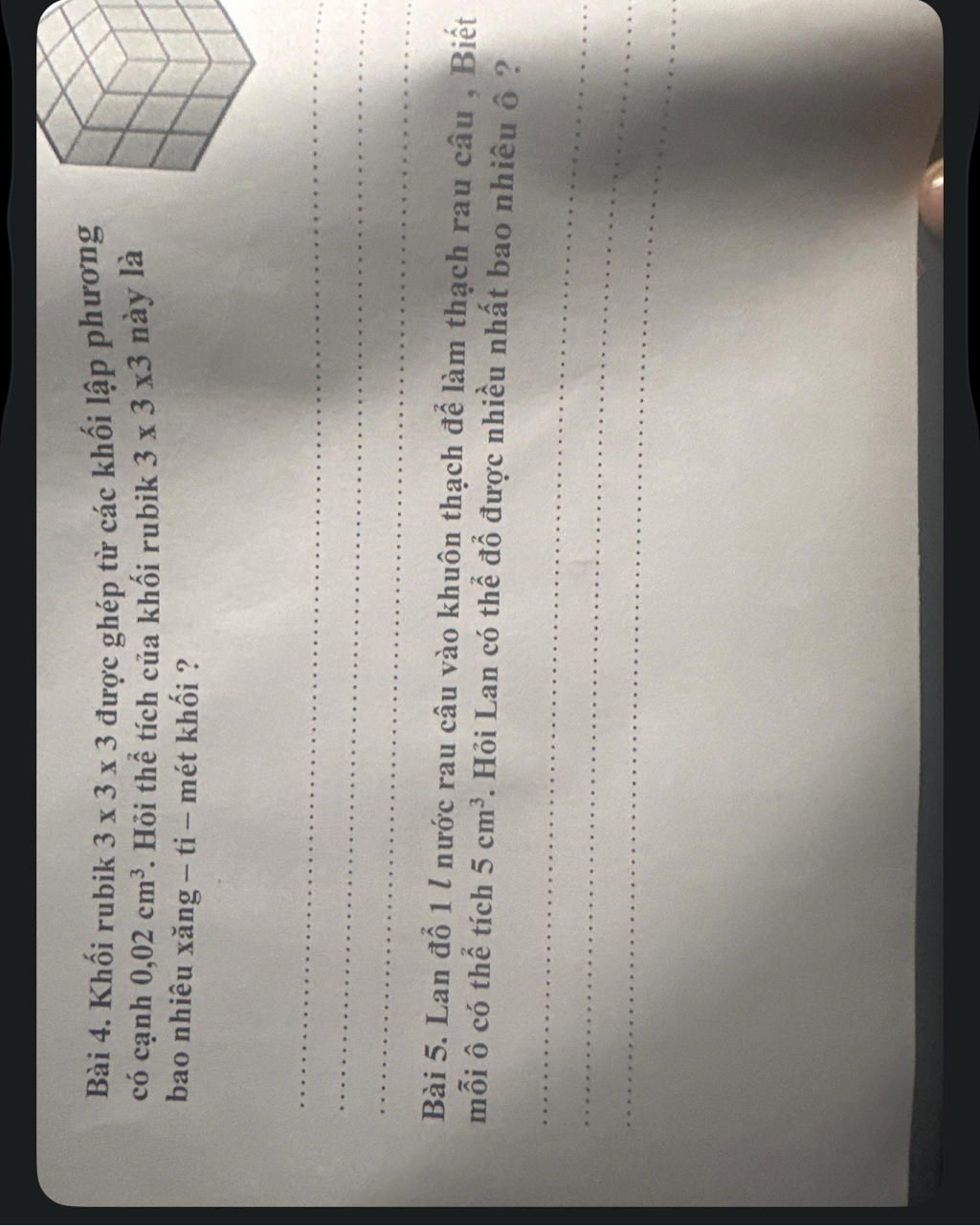 Thể tích khối rubik là :