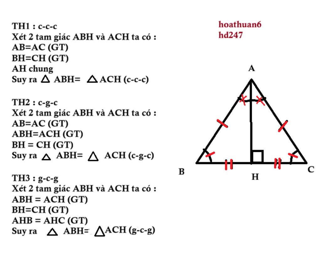 Khi `3` cạnh của tam giác này bằng với `3` cạnh của tam giác kia thì chúng bằng nhau rto trường hợp cạnh cạnh cạnh