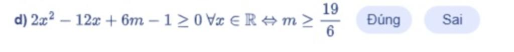 Tam thức bậc hai `f(x) = ax^2 + bx + c` `(a ne 0)` không âm trên `RR` khi và chỉ khi `a>0` và `Delta' le 0`