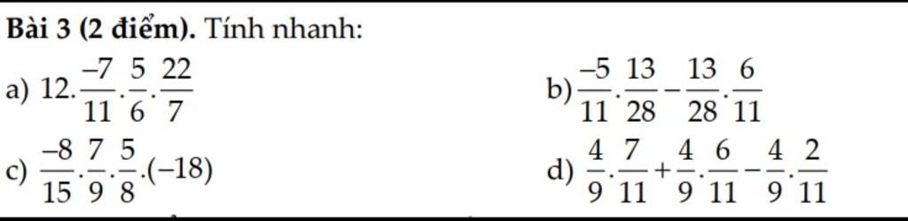 `a)12 . (-7)/(11). 5/6. 22/7`