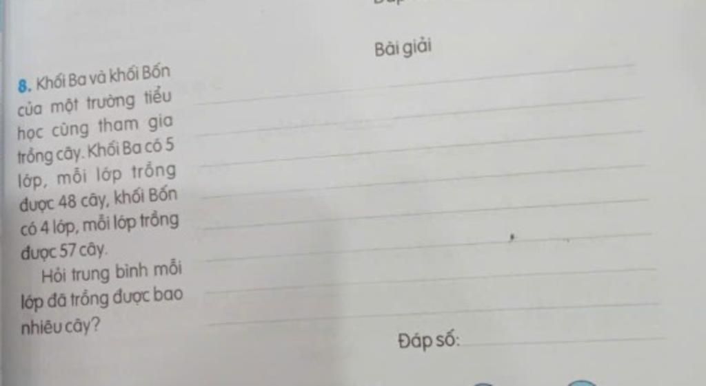 Khối Ba và khối Bốn đã trồng được tổng số cây là: