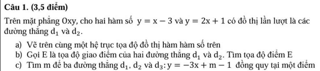 Ta có: `(d_1): y = x - 3` là một đường thẳng luôn luôn đi qua `2` điểm