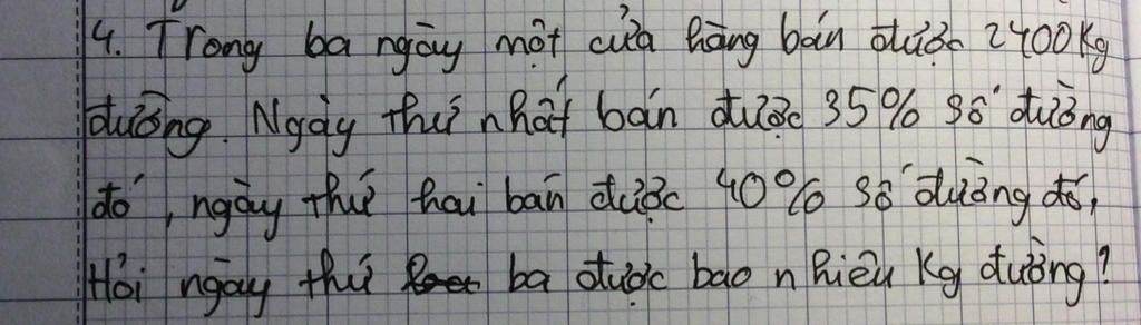 Số ki-lô-gam đường ngày thứ ba bán được là :
