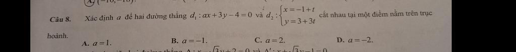 Thay `y=0=>ax-3.0-4=0=>ax=4=>x=4/a`