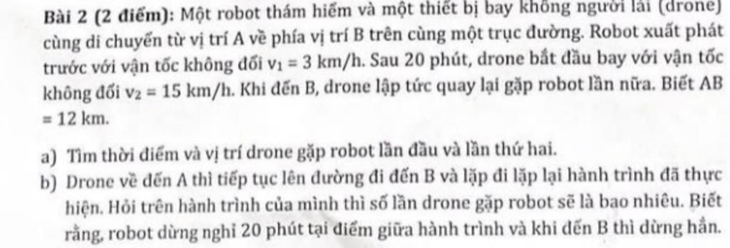 Bài 2 (2 điểm): Một robot thám hiểm và một thiết bị bay không người lái (drone)