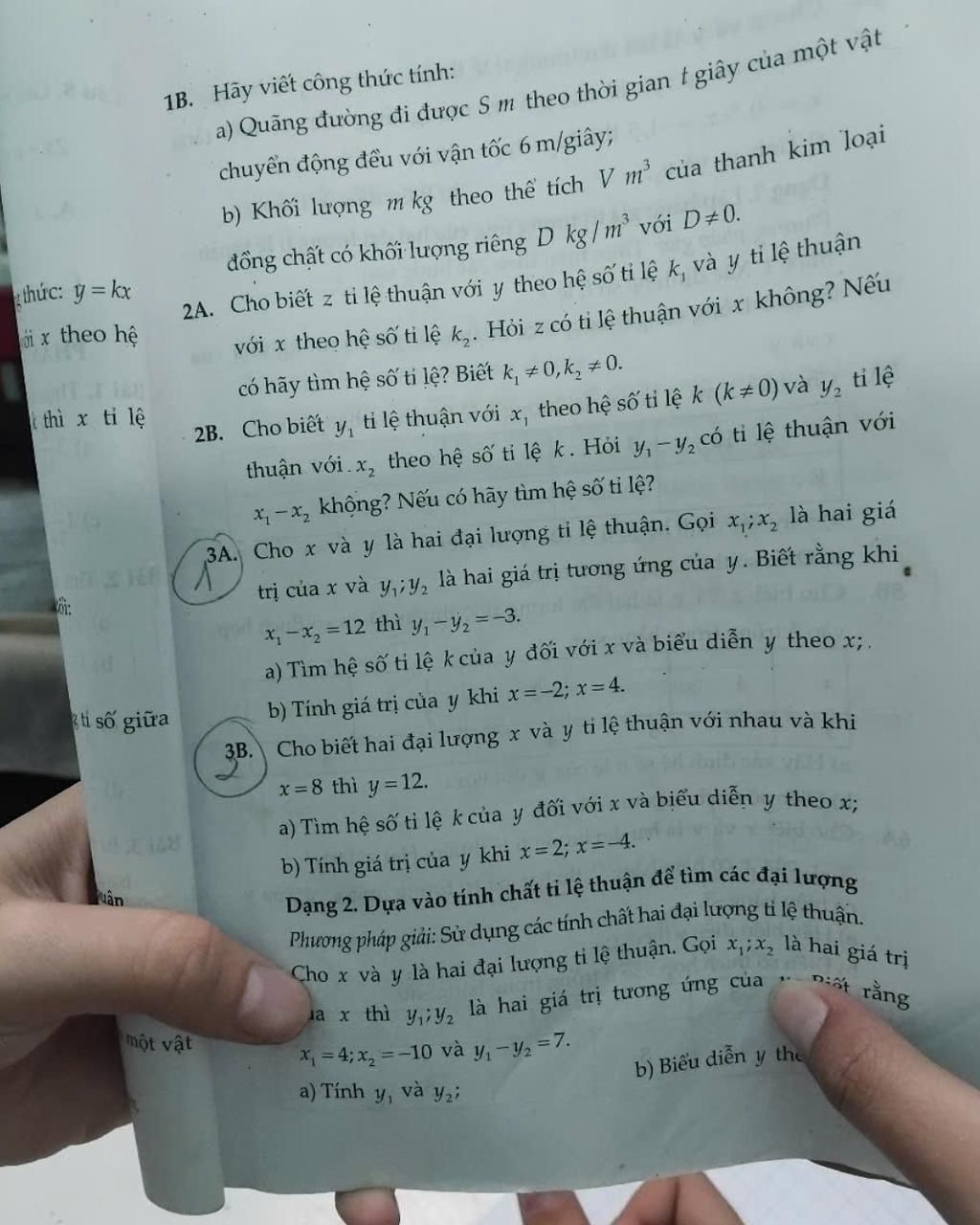 & \text{3B. Cho } x, y \text{ tỉ lệ thuận. Biết khi } x = 8 \text{ thì } y = 12 \\