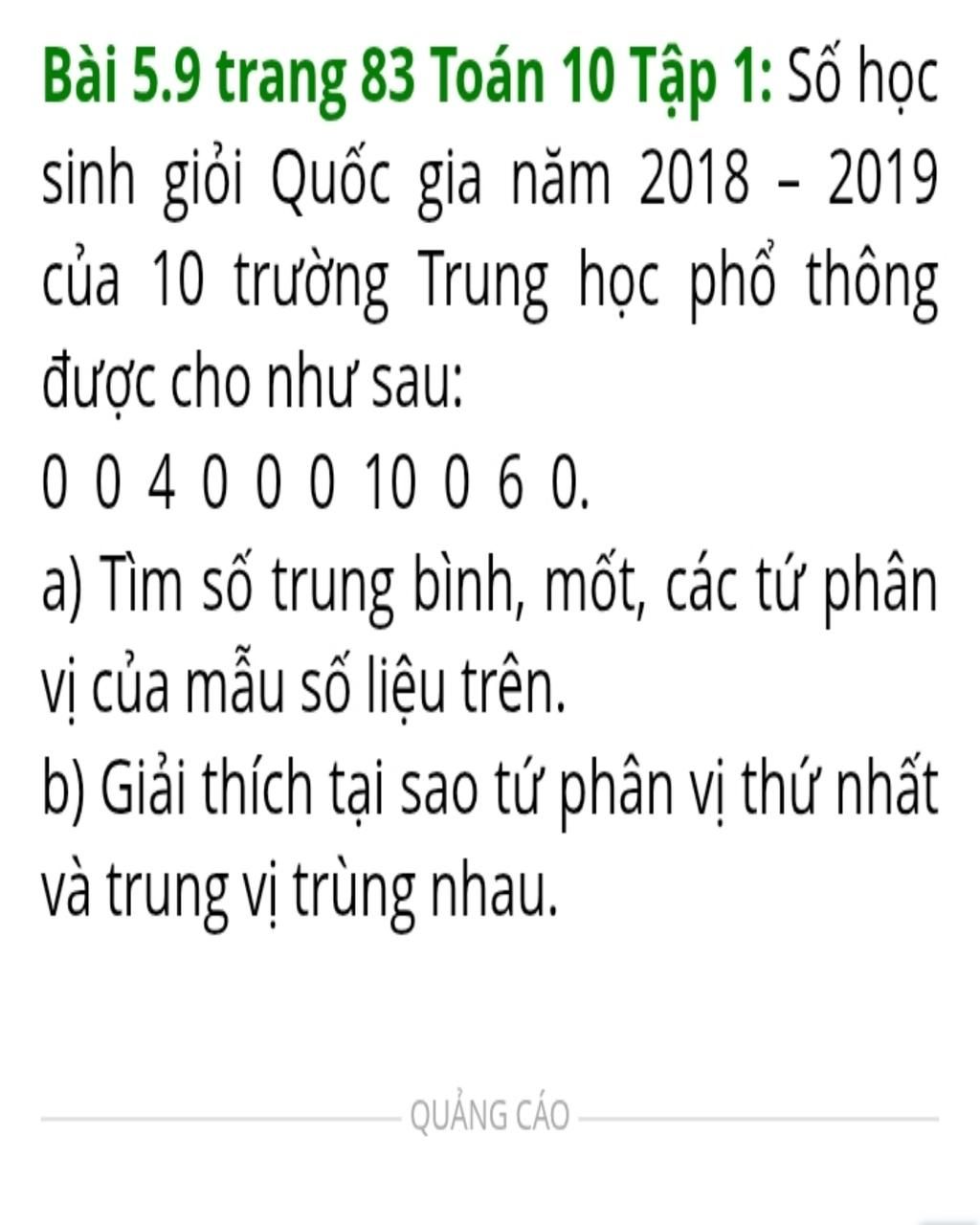 Mà tất cả các giá trị ở nửa dưới của mẫu số liệu đều bằng nhau $(= 0)$ nên tứ phân vị thứ nhất và trung vị trùng nhau