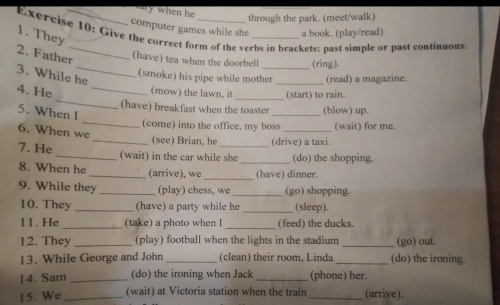 - When + quá khứ tiếp diễn ( S + was/were + V-ing ), quá khứ đơn ( S + V2/V-ed )