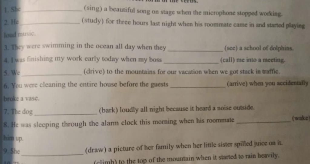 - When + quá khứ tiếp diễn ( S + was/were + V-ing ), quá khứ đơn ( S + V2/V-ed )