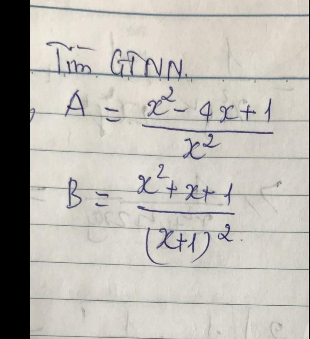 Vậy giá trị nhỏ nhất của `B` là `3/4` khi `x = 1`