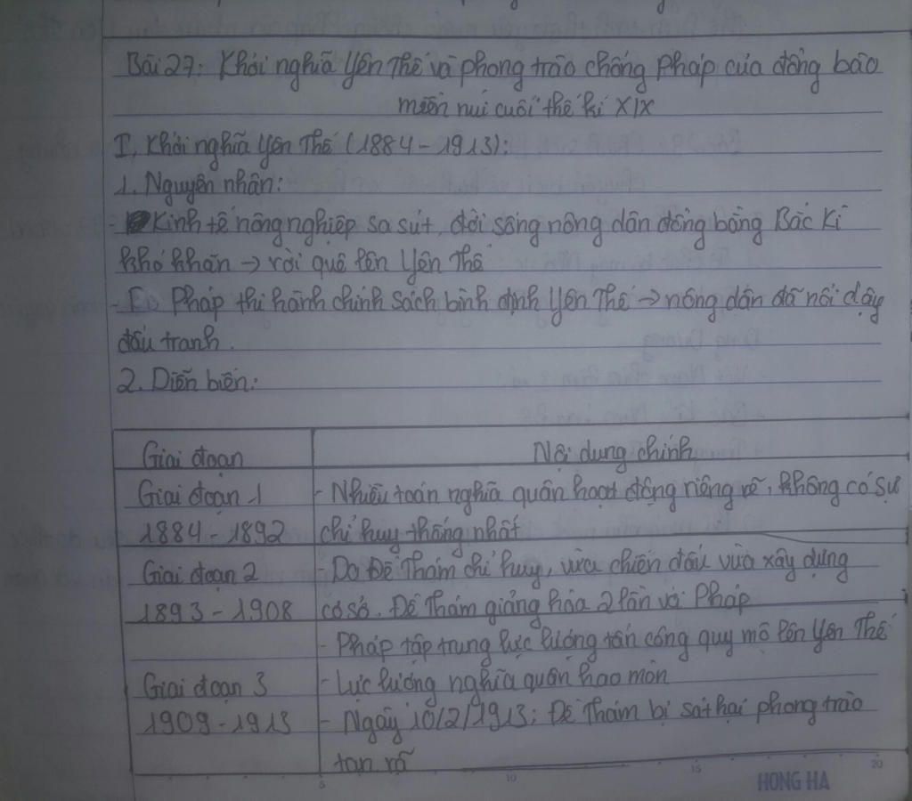 - 1909 - 1913: Pháp tập trung lực lượng tấn công Yên Thế, lực lượng nghĩa quân hao mòn. Ngày 10 - 2 - 1913, Đề Thám bị sát hại, phong trào tan rã.