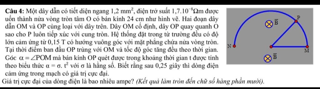 I = \dfrac{{\left| e \right|}}{R} = B.\pi {r^2}.\dfrac{{\sigma t}}{{\pi .3,{{4.10}^{ - 3}}.\sigma {t^2}}}\\