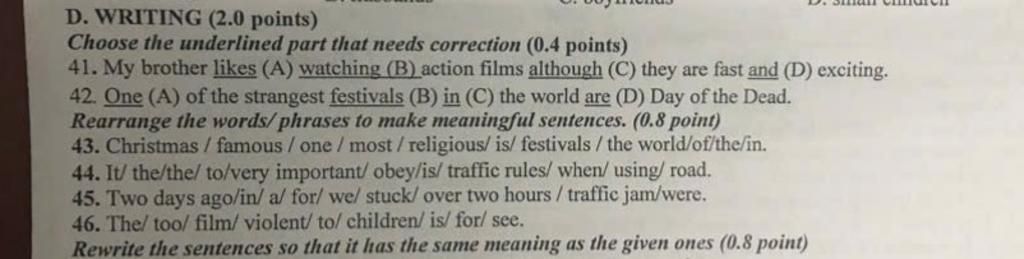 D. WRITING (2.0 points)